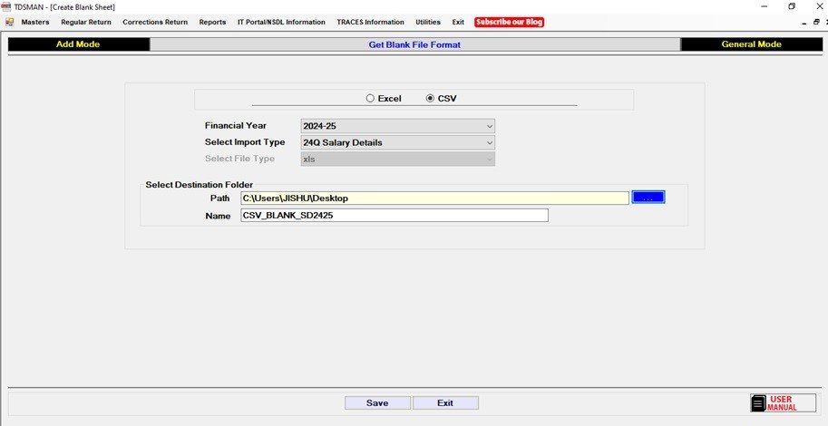 Select the Financial Year and Selected Import Type will be 24Q Salary Details. Select the Path to Save the same in the selected destination folder.