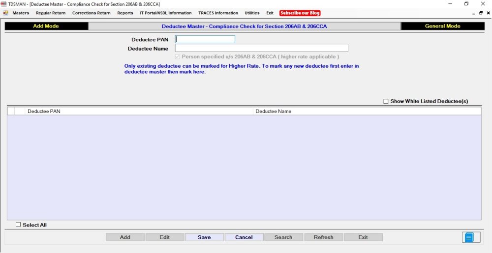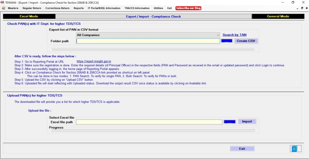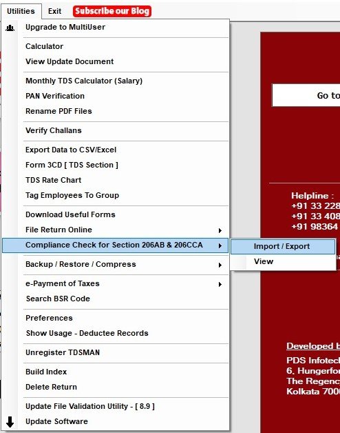 In order to do so click on ‘Utilities -> Compliance check for 206AB & 206CCA –> Import/Export’