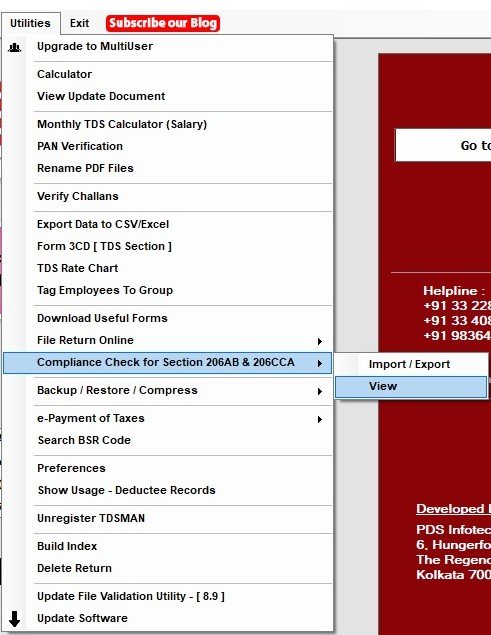 Now, in order to view this file click on ‘Utilities -> Compliance check for 206AB & 206CCA –> View’
