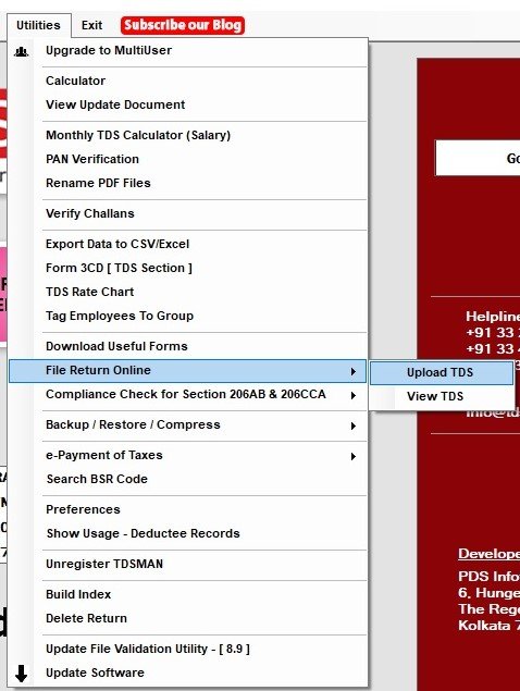 The filing of TDS / TCS Returns can be filed online through the Income Tax Portal. We have integrated the IT Portal screens directly from the software. Go to ‘Utilities > File Return Online’