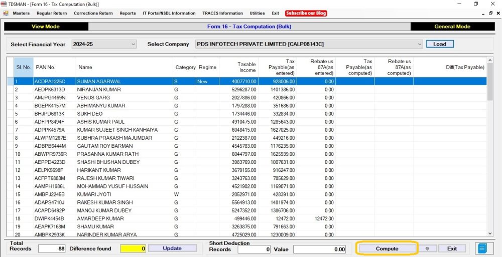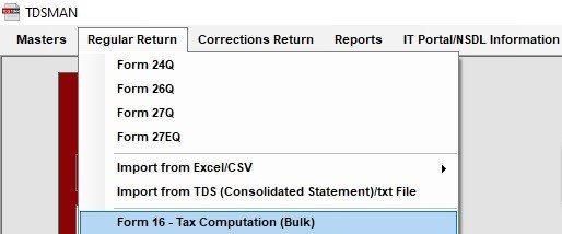 Click on ‘Regular Return > Form 16 – Tax Computation (Bulk)’