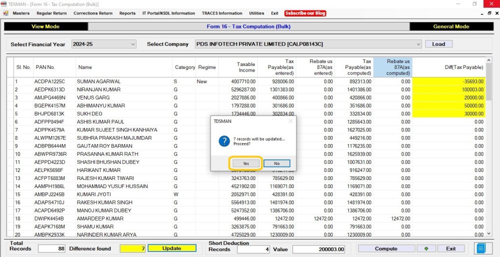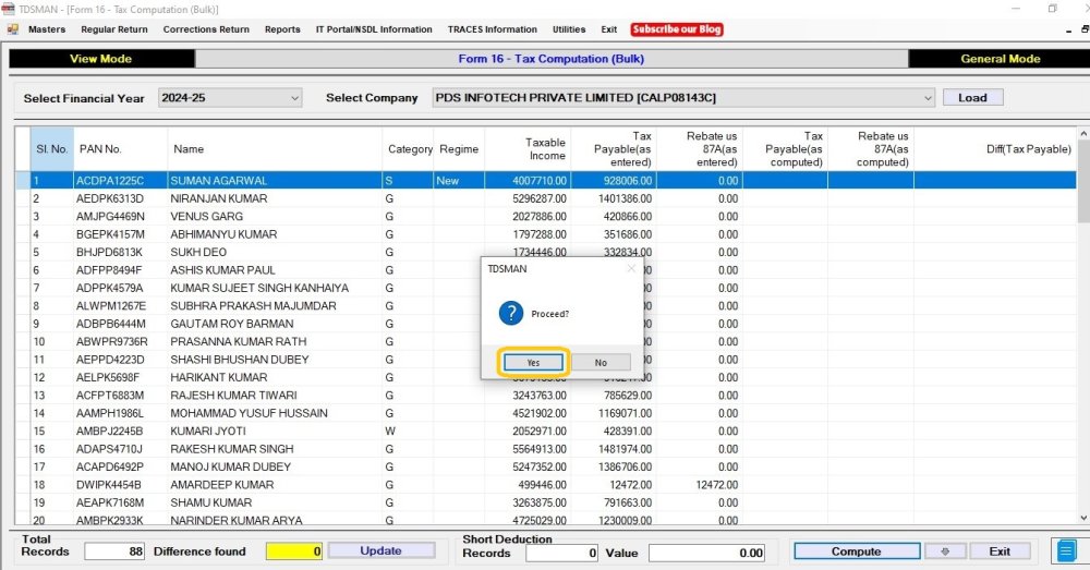 Select the Financial Year and Company. Click on ‘Load’ to get all the employee records as per Annexure II on the grid below: