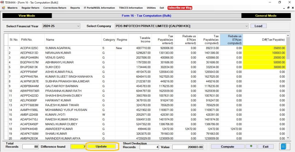 While placing or importing data in Annexure II (Salary Details) in Form 24Q, the user also enters the ‘Tax Payable’ value for each employee. On the interface of Annexure II, for each employee record, one can cross-check the entered ‘Tax Payable’ value with the system computed value and accordingly, if required correction action can be taken.