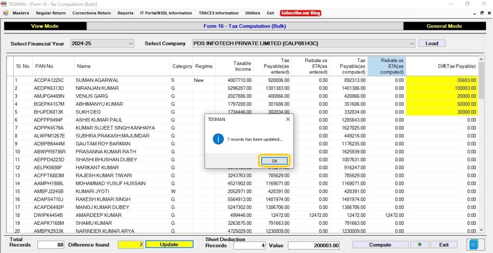 Click on ’Compute’ for determining the system calculated ‘Tax Payable’.