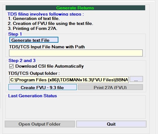 The third step is the generation of the FVU file (Return for filing). This involves successful validation of the text file (Step #1) and Challan verification (Step #2). In case of validation failure, the FVU may not be generated or generated with errors.