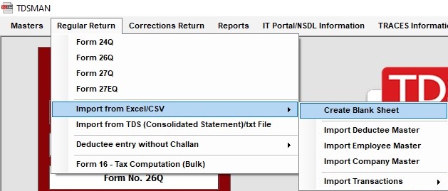 A pre-defined format has been provided in the Regular Return Menu. In order to do this, click on Regular Return > Import from Excel/CSV > Create Blank Excel Sheet :