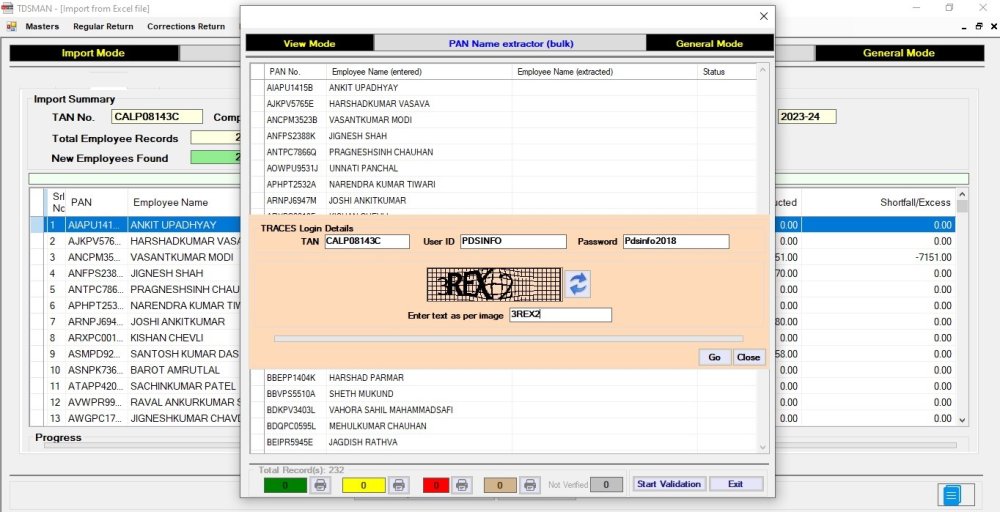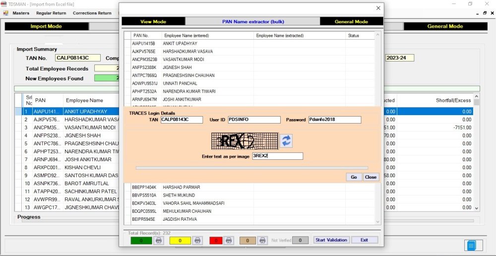 Once the credentials of TRACES are validated, click on ‘Go’. The process commences and all the Deductee Names as recorded with the government, for the respective PAN will be displayed in the interface below: