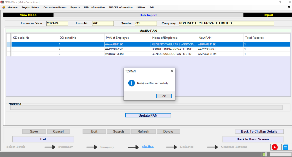 Click on Update PAN button. The data with the modified PAN will get imported into the system.