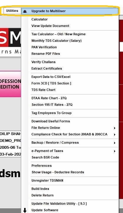 There is an option to make the TDSMAN software as multiuser software by adding clients to it. Click