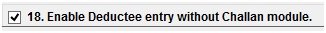 In order to first enter the Deductee records and later attach the Challan when it is paid, one needs to check the box displaying “Enable Deductee entry without Challan module”.