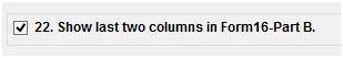In order to print additional information on ‘Total Tax Deducted’ and ‘Shortfall/ Excess’, one needs to check the box displaying ‘Show last 2 columns in Form 16-Part B’.
