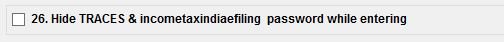 In order to ensure that the Password given for Traces and Incometaxindiaefilling while login if anyone wants to hide the password while entering he needs to check the box displaying, “Hide Traces & Incometaxindiaefilling Password while Entering”.