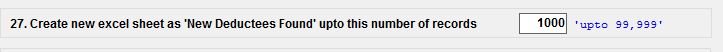 In order to Create a new excel sheet contains ‘New deductees found’ while importing any excel in the Software one can select the number of records he wants to (max. upto 99,999) , one needs to set the number in the box “Create New Excel Sheet as ‘New Deductees found’ upto this Number of Records”.