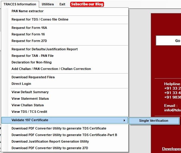 Click on ‘TRACES Information > Validate 197 Certificate > Single Verificaton’