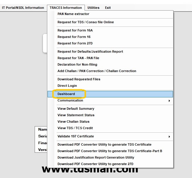 Click on ‘TRACES Information > Dashboard’, the following screen is displayed :-