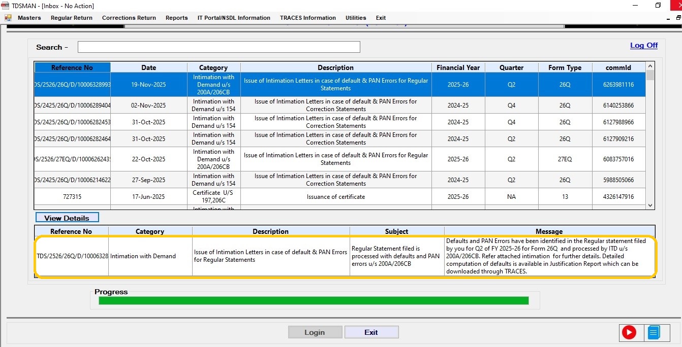 - Inbox – for messages from TRACES (link)