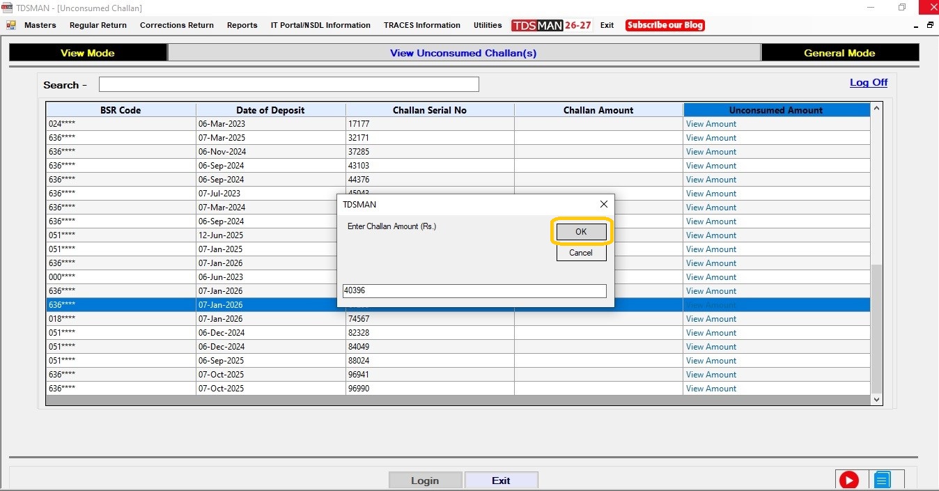Enter the Challan Amount.